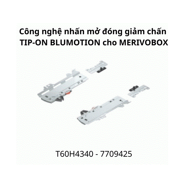 - Công nghệ nhấn mở đóng giảm chấn TIP-ON BLUMOTION cho MERIVOBOX | TIP-ON BLUMOTION for MERIVOBOX (chiều rộng lọt lòng ngăn kéo ⩾ 297mm | internal cabinet width ⩾ 297 mm)