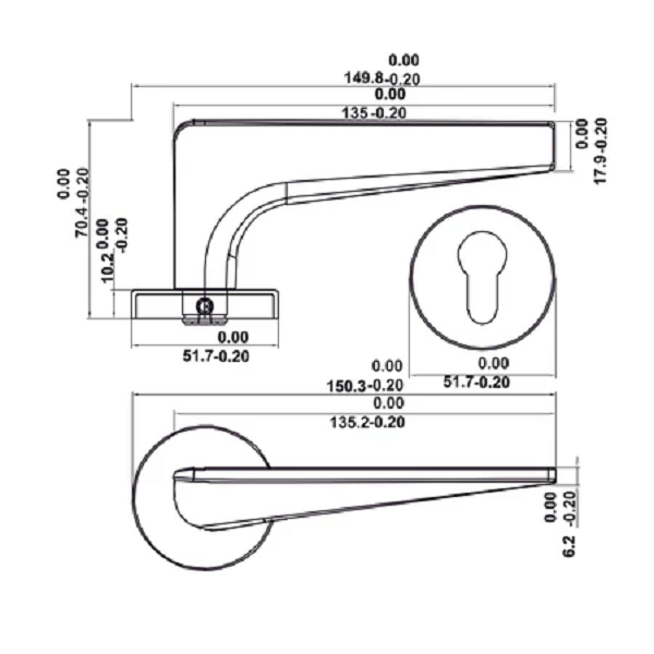 • Phù hợp cho cửa có độ dày 45-50 mm