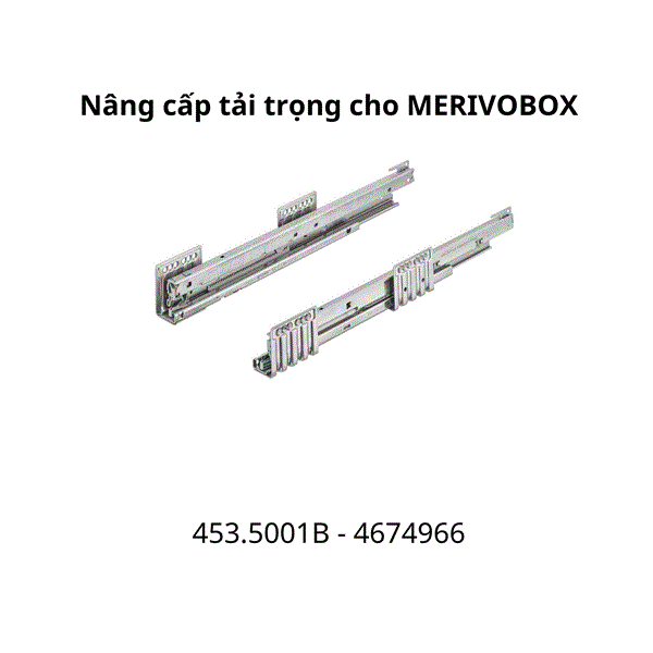 Bộ ray Blum 453.5001B 500mm giảm chấn nâng cấp tải trọng cho MERIVOBOX 70kg,4674966