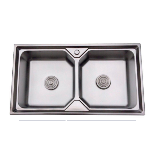 CHẬU RỬA CHÉN BÁT INOX 2 HỘC DẬP G3C-9050V GOLICAA