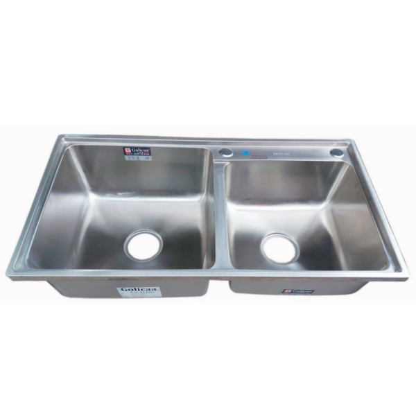 | Tên sản phẩm: | CHẬU RỬA CHÉN BÁT INOX 2 HỘC LỆCH DẬP G3C-8143LI GOLICAA |
