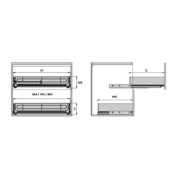 - Ray trượt giảm chấn bắt 2 bên hồi tủ