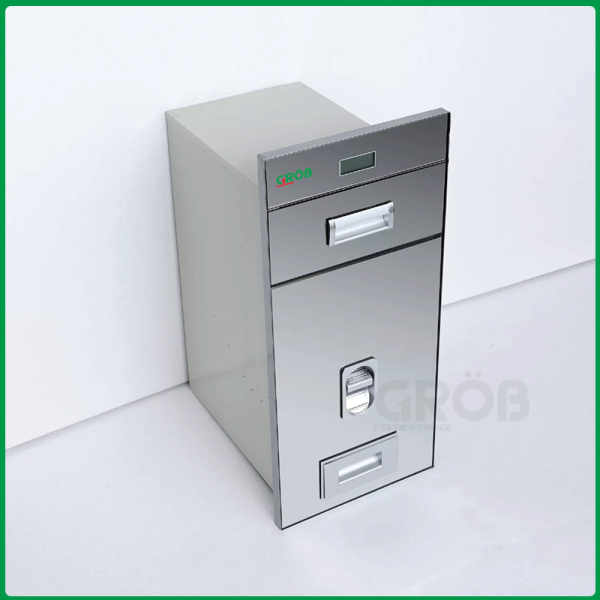 Sản phẩm có thiết kế mặt gương với hai ngăn riêng biệt giúp phân loại gạo hoặc ngũ cốc dễ dàng. Kích thước nhỏ gọn với chiều rộng khoang tủ chỉ 300mm, phù hợp cho nhiều không gian bếp.