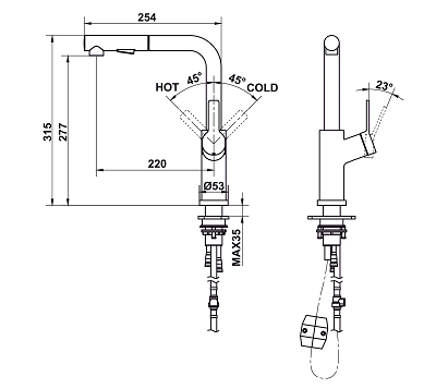 Vòi bếp Hafele LUX-P HT25 570.85.048 - SH1P315, màu chrome bóng