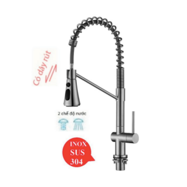 - Thiết kế lò xo rút dây linh hoạt giúp điều chỉnh dễ dàng chiều cao và áp lực nước theo nhu cầu sử dụng. Điều này mang lại tính tiện ích và linh hoạt trong quá trình rửa chén, đồ dùng bếp và thực phẩm.
