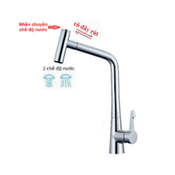 - Loại vòi: Vòi rửa chén rút dây nóng lạnh
