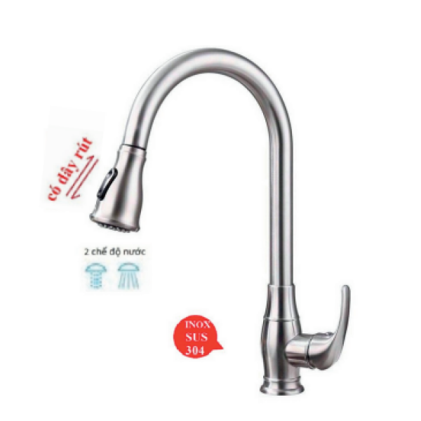 - Chất Liệu Inox SUS 304: Sử dụng chất liệu Inox SUS 304, vòi rửa chén này không chỉ có độ bền cao mà còn chống ăn mòn, giữ cho sản phẩm luôn mới mẻ và ổn định qua thời gian.